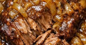 Where chuck roast surrenders to time, onions melt into velvet, and dry onion soup mix transforms into a glossy, deeply…