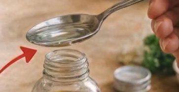 This image presents a natural remedy suggesting the consumption of 2 tablespoons of a liquid blend each morning to help…