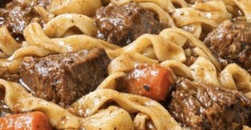 Slow Cooker 3-Ingredient Beef Stew Noodles