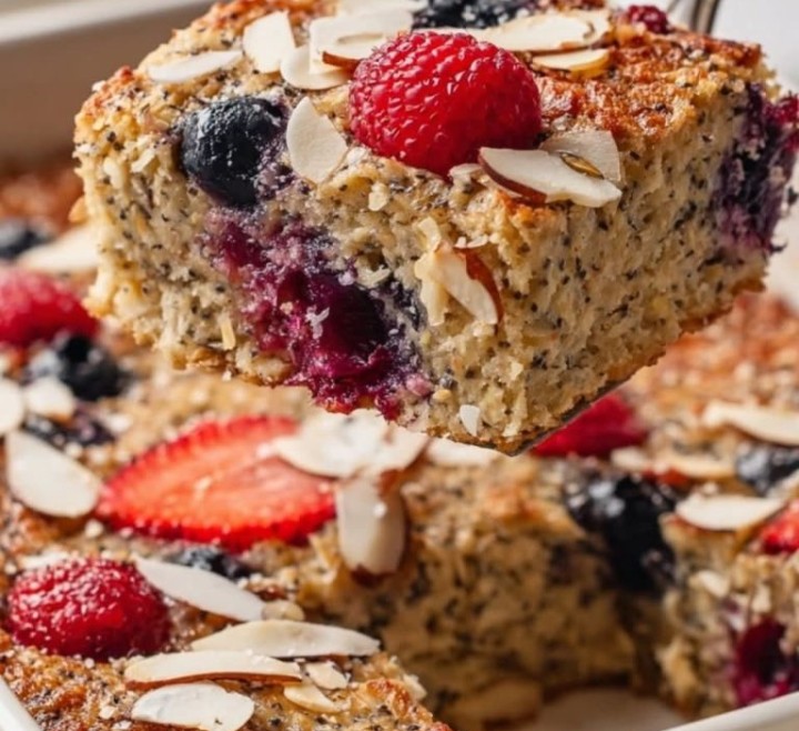 This baked oatmeal with berries and almonds is a healthy, satisfying, and delicious breakfast or snack option. It’s packed with wholesome ingredients like oats, fresh berries, and almond slices, creating a nutritious and filling meal. The combination of berries adds natural sweetness, while the almonds provide a lovely crunch. This easy recipe can be prepared in advance, making it a perfect choice for busy mornings.