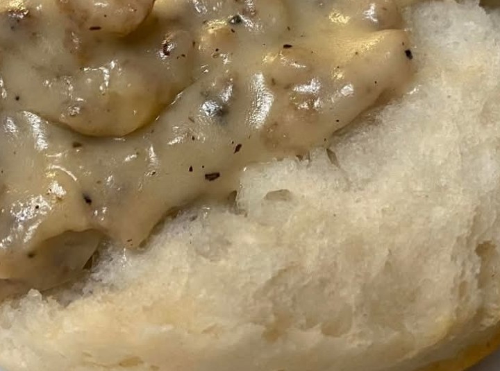 Split the warm biscuits in half and spoon the sausage gravy generously over the top. Serve immediately while hot.