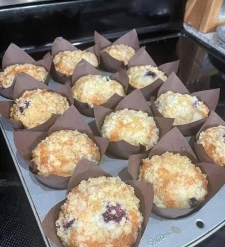 - Generously sprinkle the prepared crumble topping over the top of each muffin.