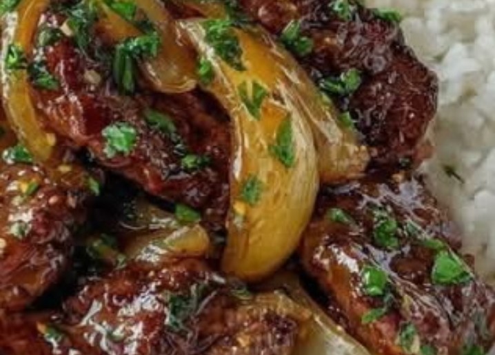 Next, heat oil in a pan or wok if you have one. Sear the beef in batches until nicely browned. Remove and set aside.