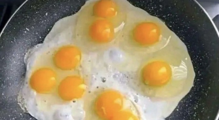 4. Gently slide the eggs into the pan, making sure not to break the yolks.