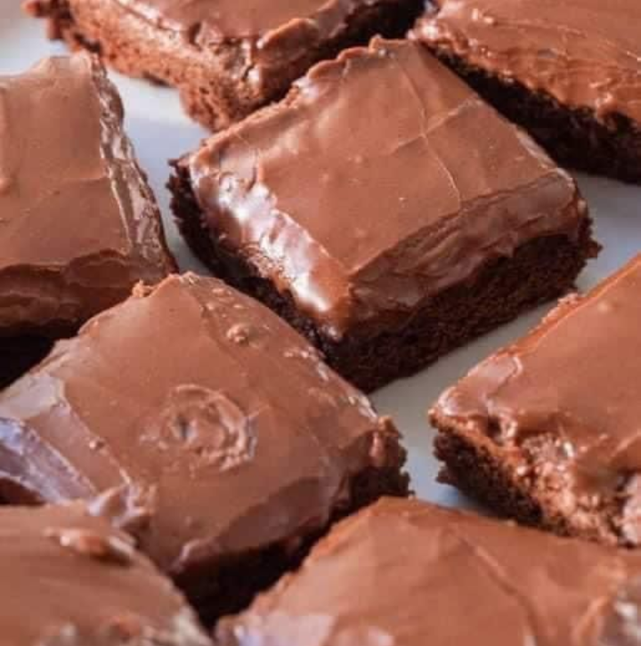 We take it out of the oven and leave it for 15 minutes. You want it to stay warm when you pour the frosting. Once you take the brownies out of the oven prepare the frosting by mixing all four ingredients together until smooth. Pour the icing over the still warm brownies. Cool completely and serve.