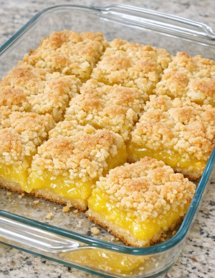 Serve these lemon bars chilled or at room temperature, cut into small squares so they’re easy to grab from the glass baking dish on a buffet. They pair nicely with hot coffee or black tea, which balances the sweetness and bright lemon flavor. For a more complete dessert spread, offer a bowl of fresh berries or a simple fruit salad alongside. If you’d like something creamy, a small dollop of lightly sweetened whipped cream on each bar works well, but they’re designed to stand on their own—especially at casual gatherings where people are nibbling as they chat.
