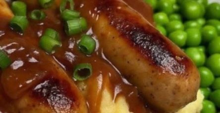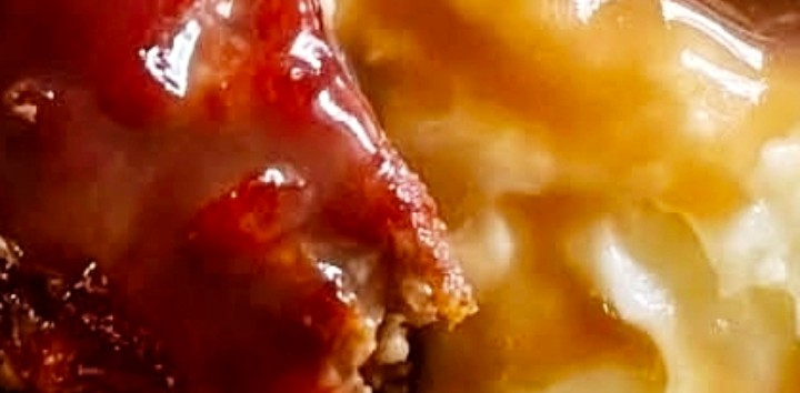 Slice meatloaf and spoon warm brown gravy over the top.