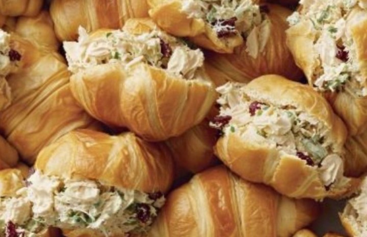 - Spoon generous amounts of the chicken salad onto the bottom half of each croissant and top with the other half.