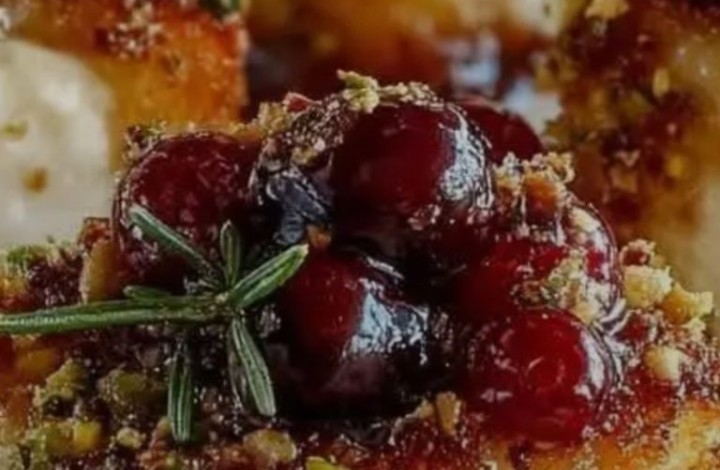 Pistachio-Crusted Brie Bites with Cranberry Honey Glaze