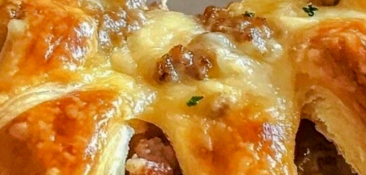 Savory Sausage and Cheese Crescent Ring: The Ultimate Holiday Appetizer Inspired by the beautiful, golden-brown wreath in the image, this recipe features a savory filling of seasoned ground meat and melted cheese, all wrapped in flaky crescent roll dough. This easy-to-make, show-stopping appetizer or light dinner is perfect for holiday parties, game days, or any festive gathering where you need a quick, impressive dish.