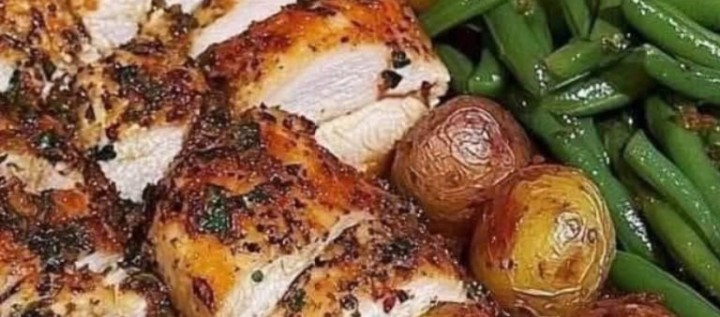 One-Pan Garlic Herb Chicken with Potatoes & Green BeansPrep Time: 15 minutesCook Time: 45 minutesServings: 4Calories: ~400 per servingIngredientsFor the Chicken4 boneless, skinless chicken breasts2 tbsp olive oil2 tsp garlic powder1 tsp dried oregano1 tsp paprikaSalt & black pepper to tasteFor the Vegetables3 cups baby potatoes (quartered)2 cups fresh green beans2 tbsp olive oil2 garlic cloves (minced)1 tsp dried thyme1 tsp smoked paprikaSalt & pepper to tasteFor the Sauce1/4 cup chicken brothJuice of 1 lemon1 tbsp Dijon mustardInstructions:Preheat the oven: Preheat to 400°F (200°C) and lightly grease a large baking dish.Season the chicken: Rub chicken breasts with olive oil, garlic powder, oregano, paprika, salt, and pepper. Set aside.Prepare the veggies: Toss potatoes and green beans in olive oil, minced garlic, thyme, paprika, salt, and pepper. Spread evenly in the baking dish.Assemble the dish: Nestle the chicken breasts on top of the veggies.Make the sauce: Whisk together chicken broth, lemon juice, and Dijon mustard. Drizzle over the chicken and vegetables.Bake: Roast for 40-45 minutes or until the chicken reaches an internal temperature of 165°F (74°C) and the potatoes are tender.Serve & enjoy: Let rest for 5 minutes before slicing the chicken. Plate with veggies and drizzle any remaining sauce from the pan for extra flavor!Notes & VariationsVeggie swap: Use carrots, zucchini, or bell peppers instead of green beans.Make it spicy: Add a dash of chili flakes for a kick.Add cheese: Sprinkle Parmesan over the dish during the last 10 minutes of baking for a cheesy finish.