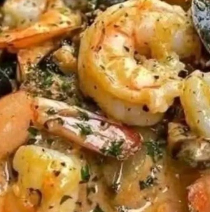Ingredients• 1 lb shrimp, peeled and deveined• 1 lb mussels, scrubbed and debearded• 2 tablespoons olive oil• 4 cloves garlic, minced• 1 small onion, finely chopped• ¼ teaspoon red pepper flakes (optional)• ½ cup dry white wine (or seafood broth)• 1 cup heavy cream• ½ cup grated Parmesan cheese• 1 tablespoon lemon juice• 2 tablespoons chopped parsley• 1 tablespoon butter• Salt and black pepper, to taste Instructions• Rinse and clean the mussels, discarding any with broken shells or that don’t close when tapped.• Heat olive oil in a large skillet, then sauté garlic, onion, and red pepper flakes until softened and fragrant.• Add white wine, bring to a simmer, and steam the mussels until they open. Remove opened mussels and discard any that stay closed.• Add shrimp to the pan and cook until pink and opaque, about 3 minutes.• Stir in heavy cream, Parmesan cheese, butter, lemon juice, and the cooked mussels. Simmer gently until the sauce thickens and coats the seafood.• Season with salt and pepper, garnish with fresh parsley, and serve immediately with crusty bread or pasta. How to MakeStart by cleaning and steaming the mussels to ensure freshness and flavor. Sauté garlic and onion for an aromatic base, then simmer seafood in wine and cream to build a luscious sauce. Finishing with Parmesan and lemon gives the dish richness and balance.⸻Variations• Use half-and-half instead of heavy cream for a lighter version.• Add cherry tomatoes or spinach for extra freshness.• Swap mussels with clams or scallops for variety.• Infuse the sauce with saffron or paprika for a deeper flavor profile.⸻Tips• Always discard mussels that don’t open after cooking.• Do not overcook shrimp; they become rubbery quickly.• For extra depth, reduce the wine slightly before adding the cream.• Serve with warm, crusty bread to soak up the sauce.
