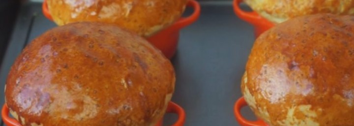 Here is a soft, fluffy mini brioche / poppy seed bread recipe inspired by your images — beautifully risen, shiny, golden, and baked in small ramekins or mini pots.