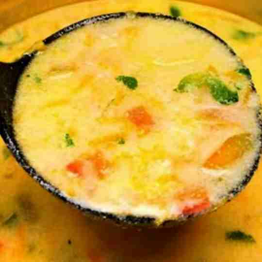 Present the soup hot in ladles into bowls. Savour your good and nutritious vegetable soup.