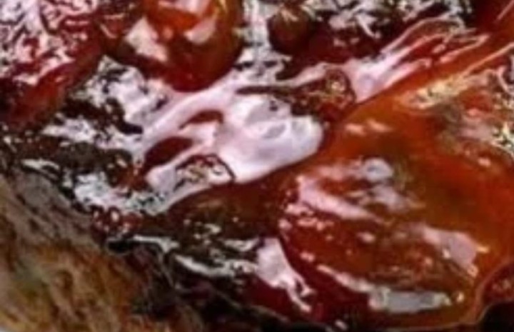 Bake uncovered for 45 minutes. Remove from the oven, spread the remaining glaze on top, and return to bake for another 15–20 minutes, or until the internal temperature reaches 160°F (70°C). - Rest and Serve: