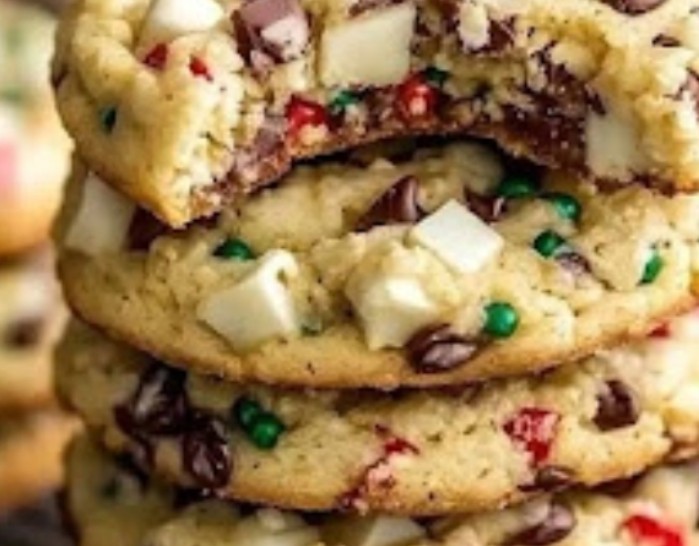 6. Fold in the chocolate chips, crushed candy canes, and white chocolate chips.